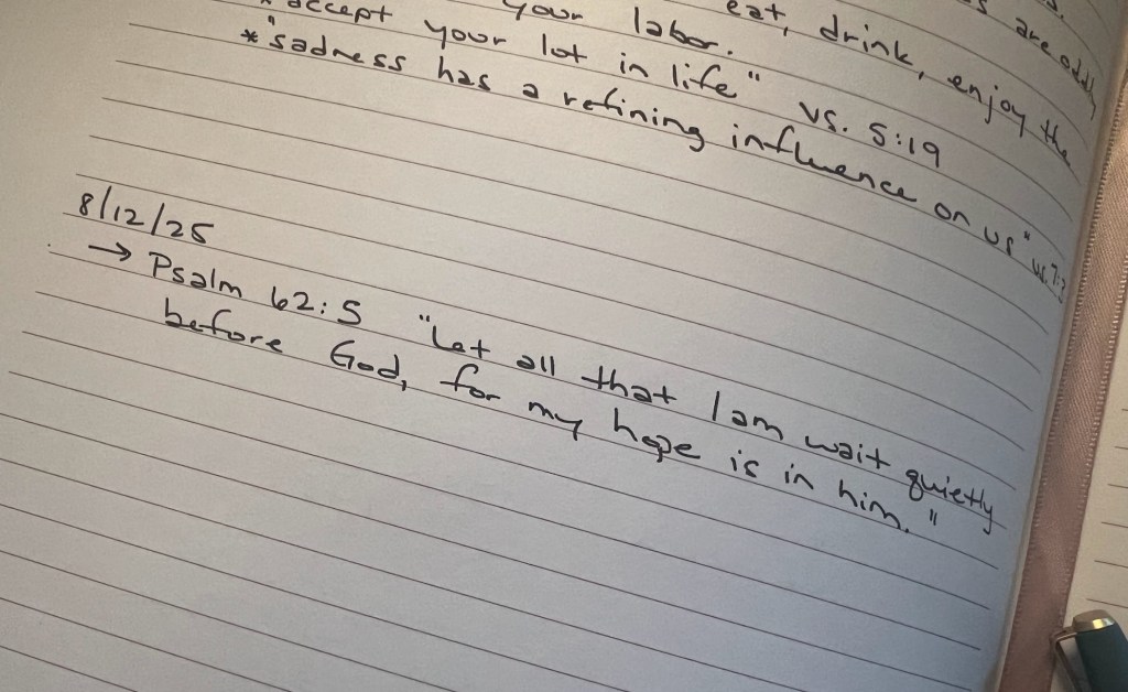 “Let all that I am wait quietly before God, for my hope is in him.” Psalm 62:5