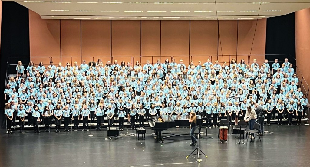It’s the painting in the hospital lobby that makes me stand still for just a moment. It’s the voice on the radio I involuntarily turn up a little louder. It’s the unscripted movie scene that makes me belly laugh. Heck, sometimes it’s even the awesome hair of some beautiful stranger on the street that catches my eye. More traditionally, it’s a performance, or just a stupid commercial!, that gets me. The photo above is of my daughter in a group of other Nebraska 4th and 5th graders singing in the All-State Children’s Choir. And, yes, the music was so good I cried at that, too.